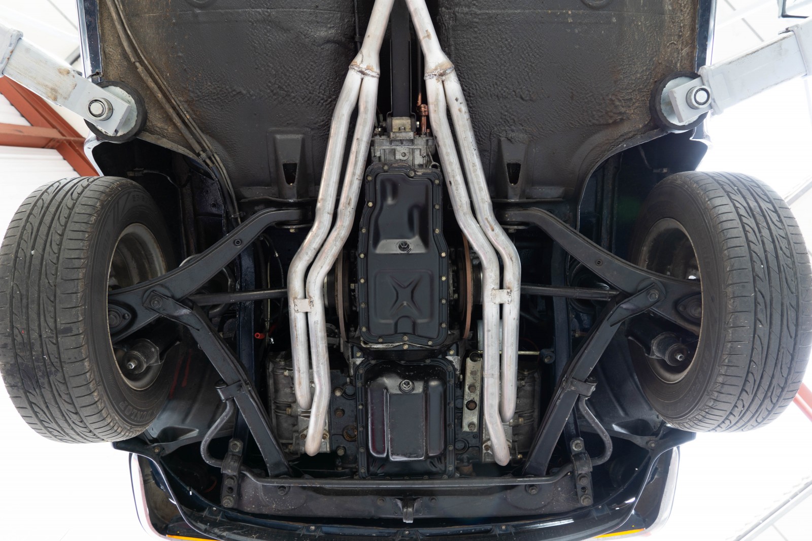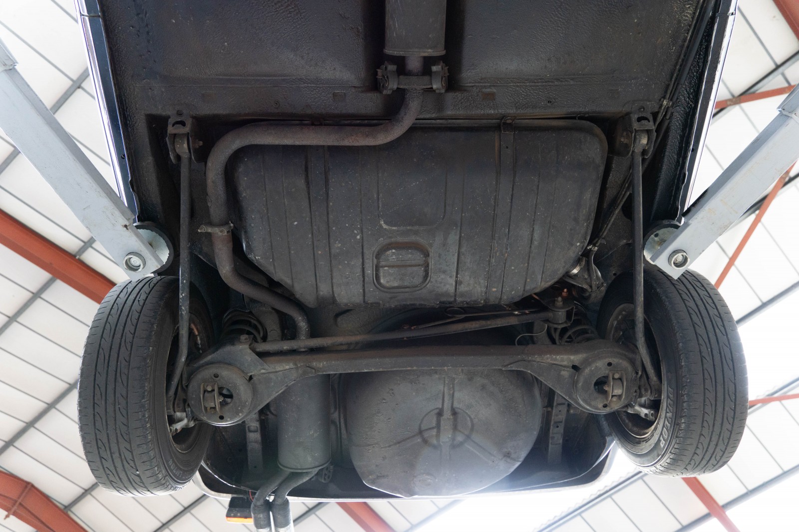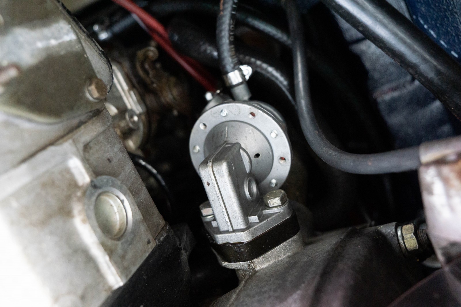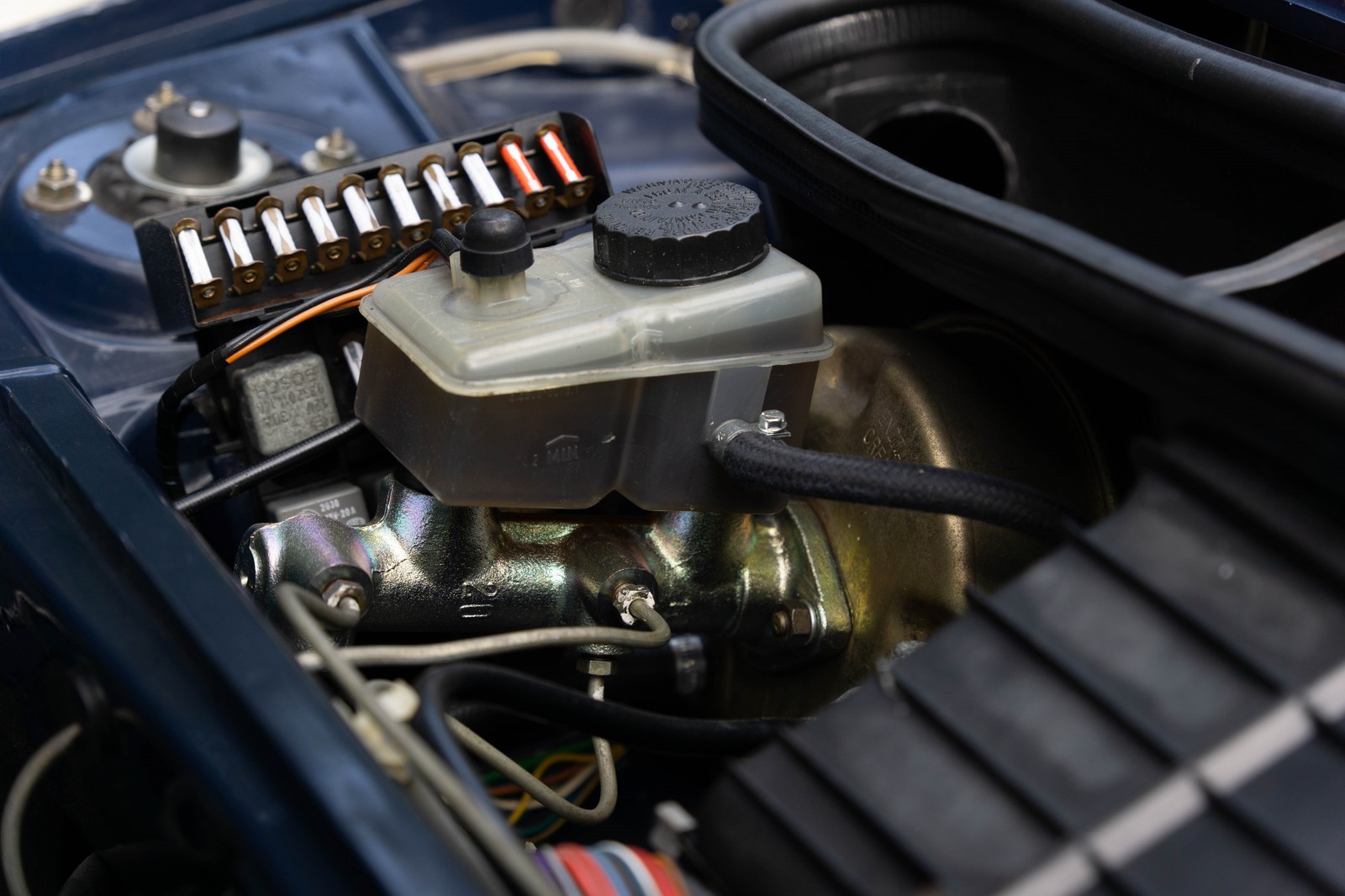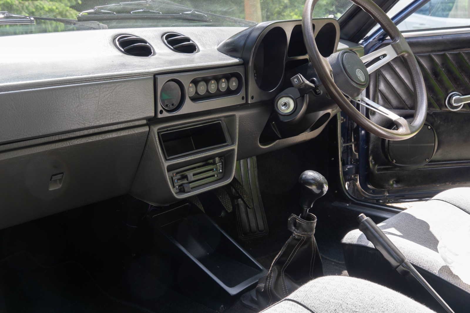 Since arriving from Australia the car has had a thorough service and some re-commissioning and has been done. The engine oil and filters changed, the carburettors cleaned and overhauled, the ignition components replaced. All fluids have been replaced including coolant, gearbox oil and brake fluid. New front shock absorbers fitted and the lower suspension arm bushes replaced. The original front exhaust section (manifolds) has been replaced with a new mild steel Imasaf section. The period-correct Ansa Sport rear silencer sounds great. The brakes have been extensively services including a new replacement brake master cylinder and handbrake cable. The slightly tired outer headlamps have been replaced with a pair of old stock originals. Replacement battery fitted. A rear fog lamp has been fitted as per UK MOT requirements.